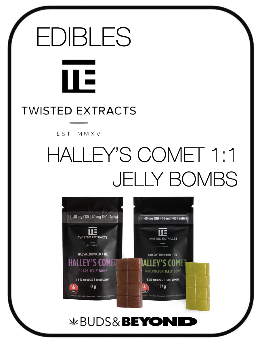 Not the fiery space ball, but our newest Twisted Extracts Halley’s Comet Jelly Bomb. These gummies pack a powerful punch so make sure you start low and go slow (seriously, take it easy Cheech and Chong). They’re naturally high in CBD so they’re great for kicking that chronic pain in the a**, helping you relax, and have an overall great time no matter what you’re doing (or not doing, couch potato days are okay too).